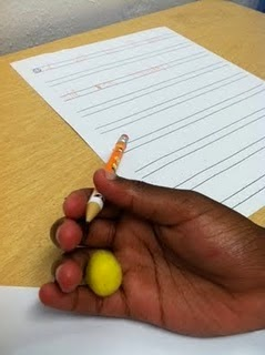 Stavite detetu u ruku mali predmet između malog prsta, prstenjaka i kažiprsta te neka tokom pisanja dete čuva taj predmet prstima. To može biti pom-pom loptica, manja lego figurica, manja bodljikava loptica i sl.