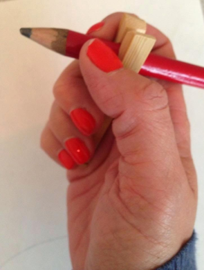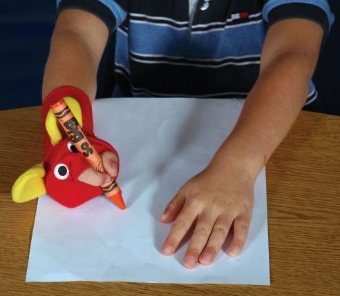 Za prilagođavanje hvata olovke možete koristiti i čarapu koju kad navučete na ruku izrežete malo na području palca i kažiprsta. Dete bi trebalo da stavi ruku u čarapu , provuče palac i kažiprst kroz izrezana područja i uhvati olovku.