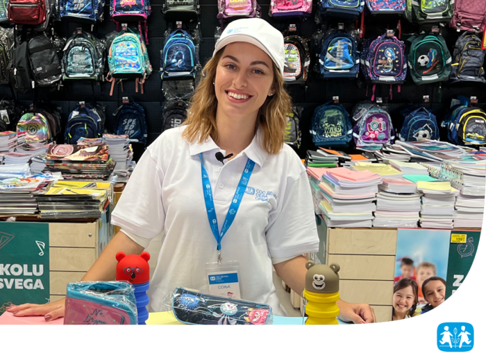 U okviru pomenute akcije, od kupovine odabranih svezaka, kutija bojica i flomastera odvaja se 1 dinar, od pernica 10 dinara, a od kupovine ranaca 50 dinara za SOS Dečija sela Srbija. Od prikupljenih sredstava ova humanitarna organizacija će obezbediti bolje uslove za život dece i mladih koji su deo njenih programa.
