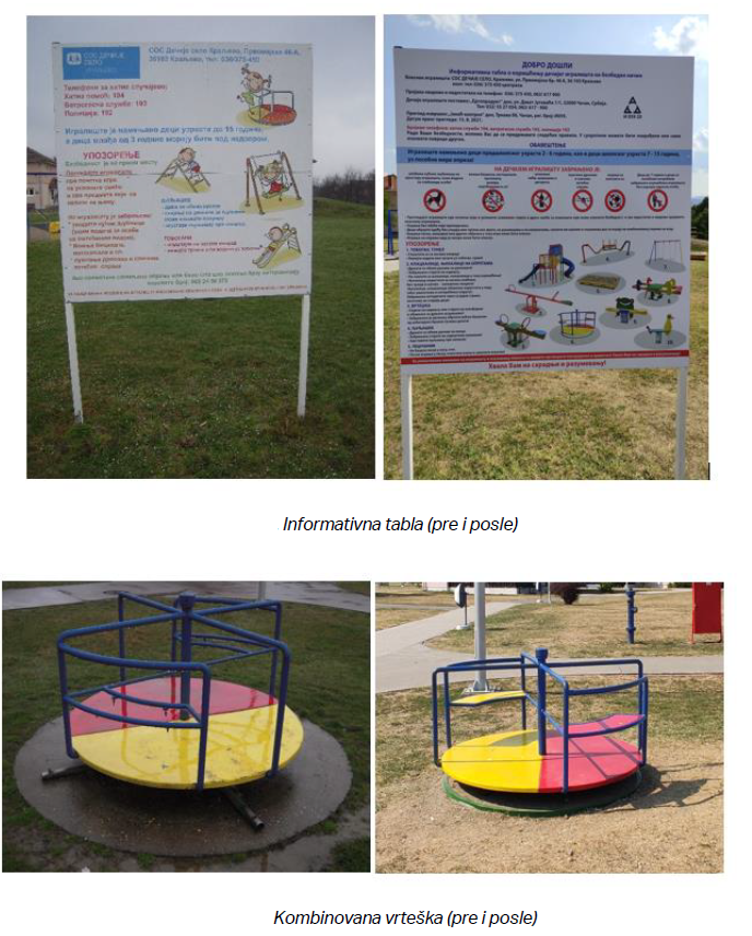 Većina dece u Dečijem selu Kraljevo je nižeg školskog uzrasta i svoje slobodno vreme uglavnom provode na igralištu. Vest da će dobiti nove spravice za igru veoma ih je obradovala. Nestrpljivo su čekali završetak radova.